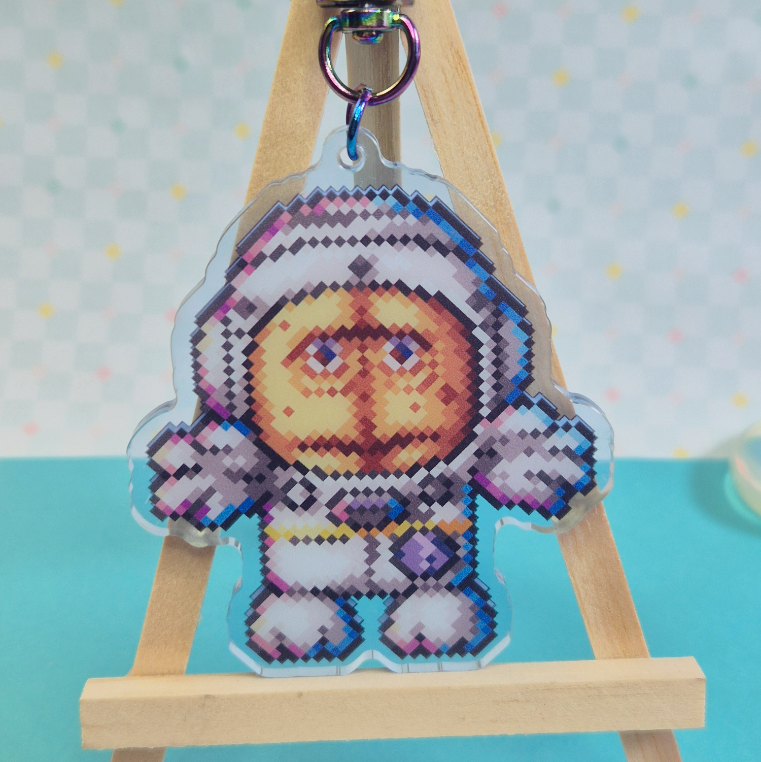 Colored Acrylic Charm with Pixel Art Bernd motive.
