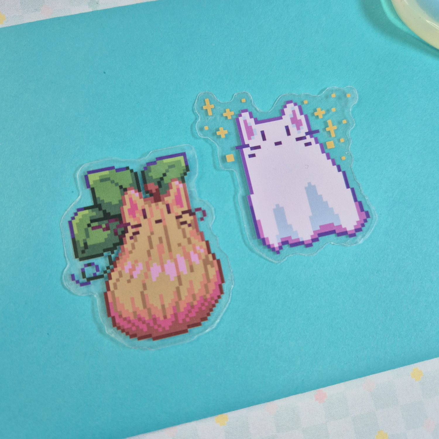 Clear Vinyl Sticker with Pixel Art Cat motive.