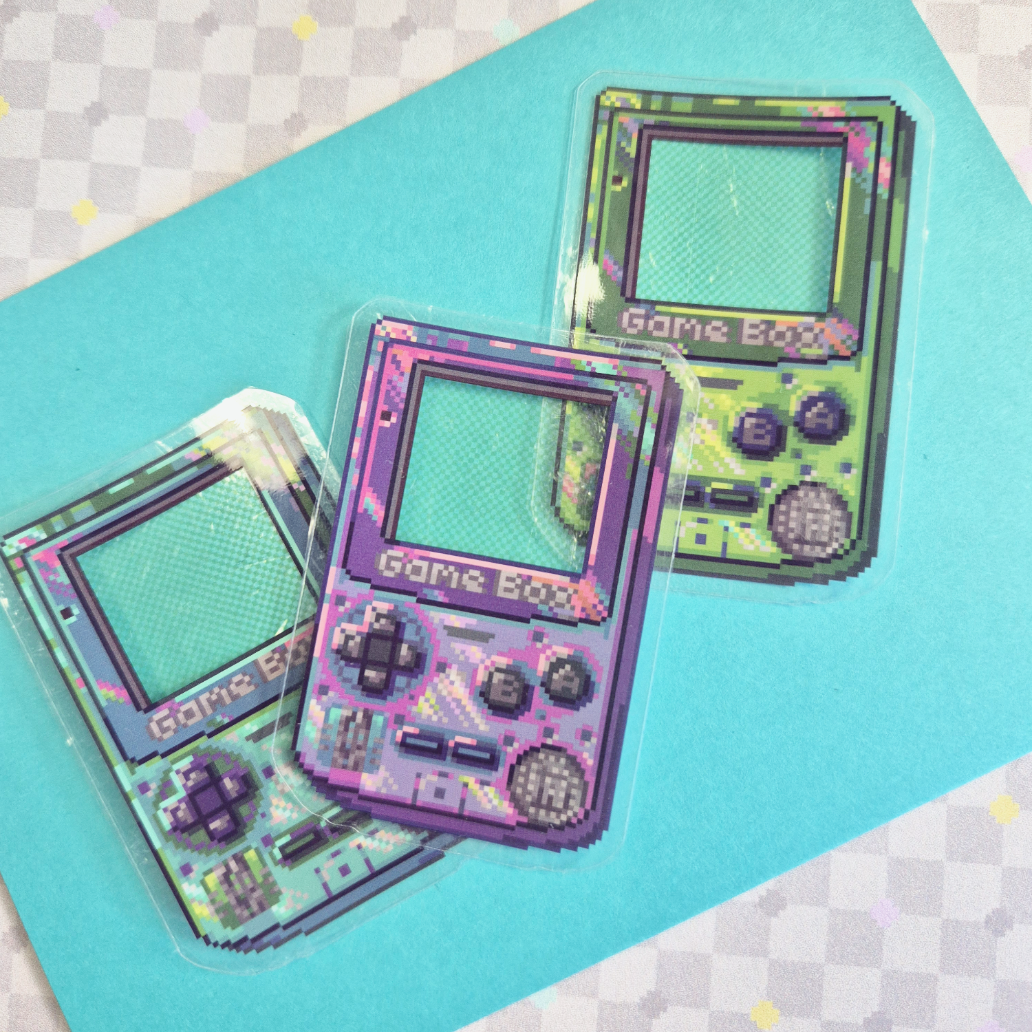 3 Clear Vinyl Sticker with Pixel Art GB motive.